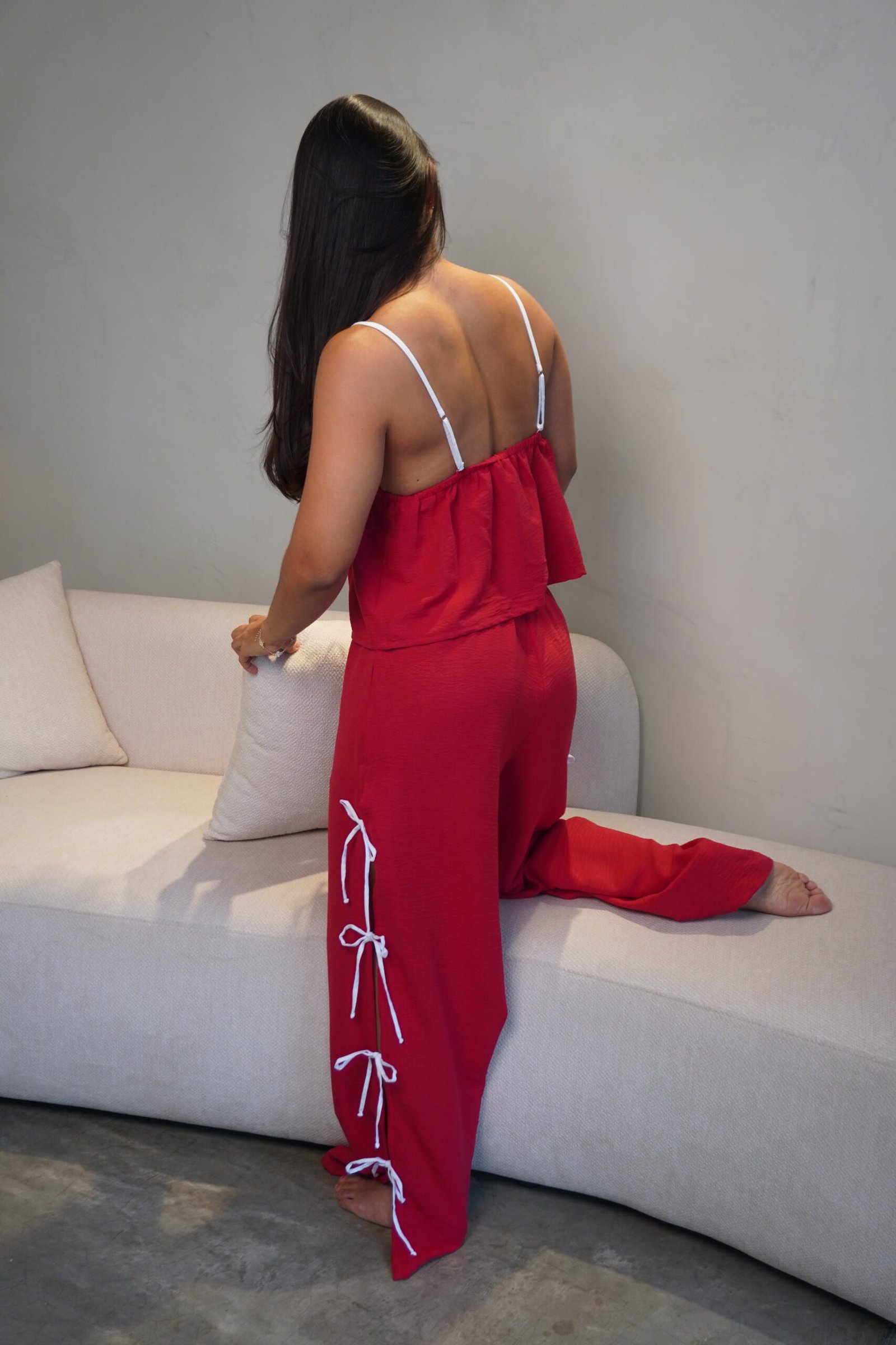 Pijama elaborada en tela rayón suave y fresca con tiras graduables, diseño navideño y pantalón con resorte en cadera.